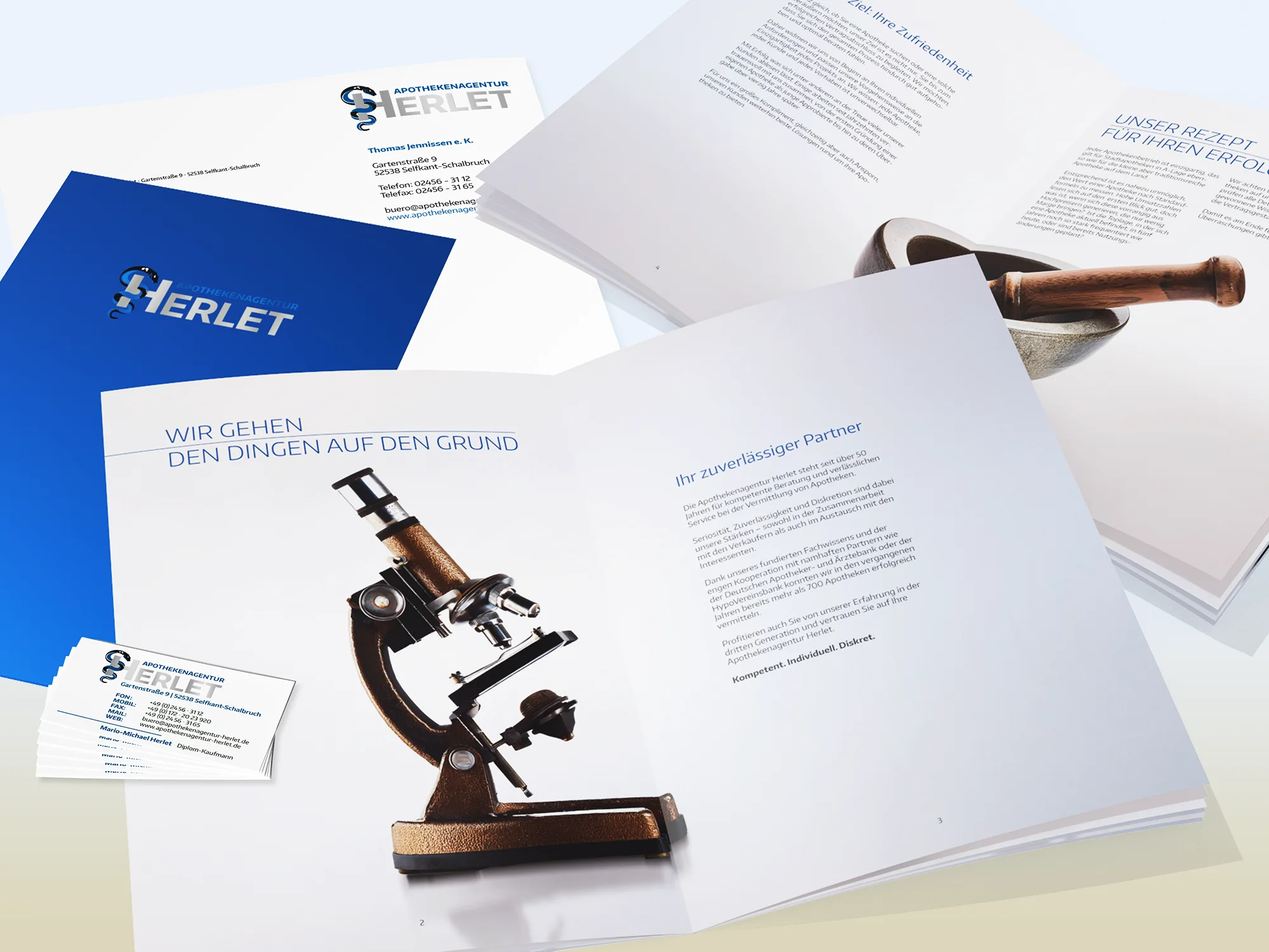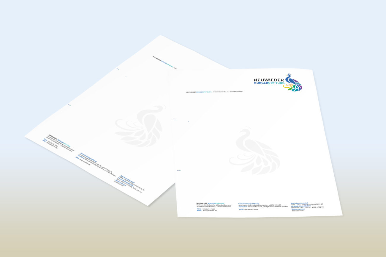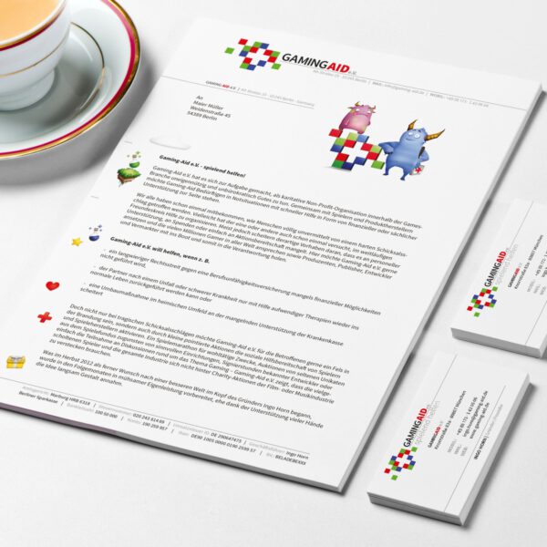 Entwicklung und Umsetzung von Geschäftsausstattungen: Briefpapier, Visitenkarten, Mappen und Formulare.