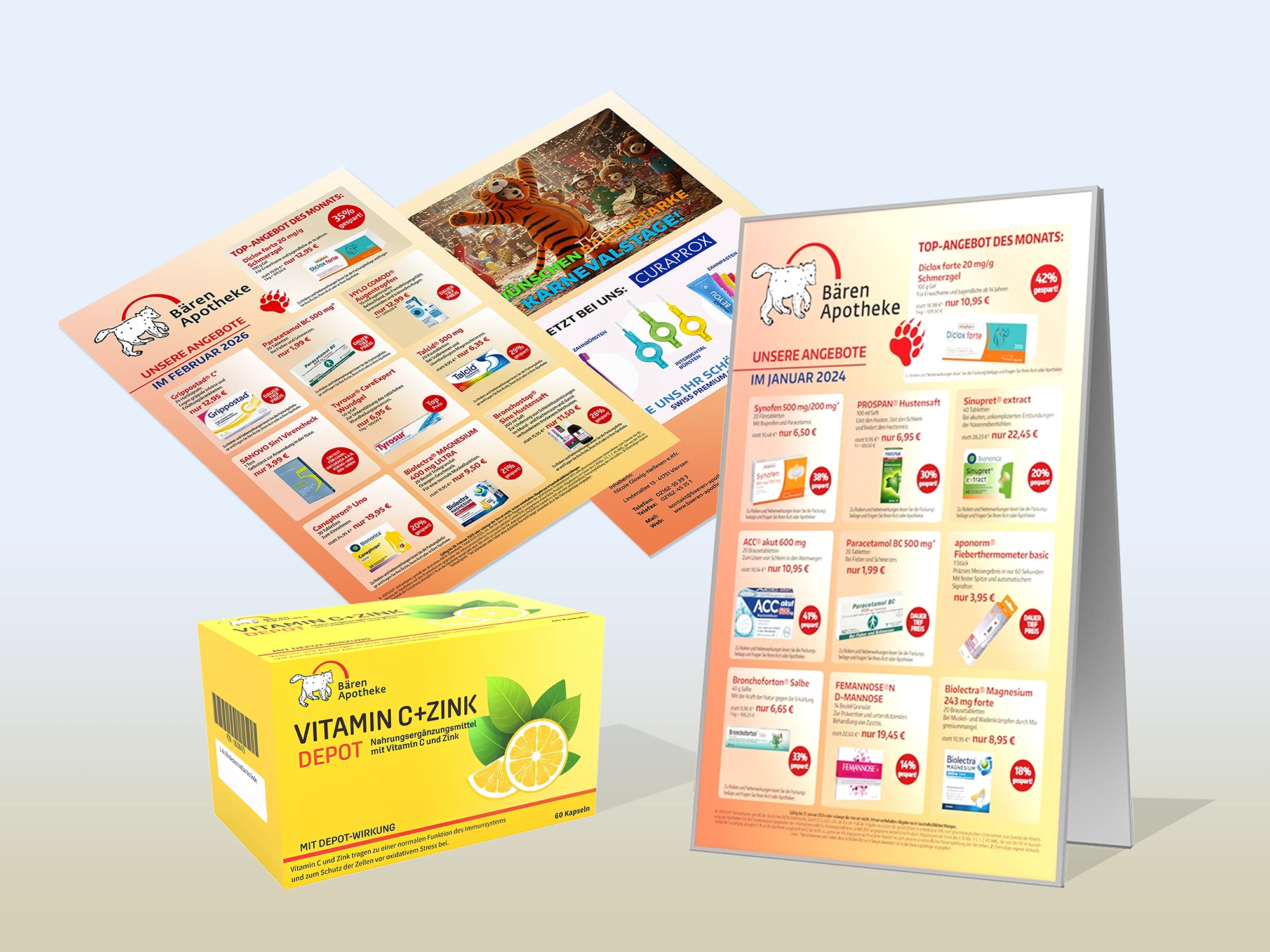 Konzeption wirkungsvoller Werbemittel für Point-of-Sale, Apotheken-Marketing und Einzelhandel.