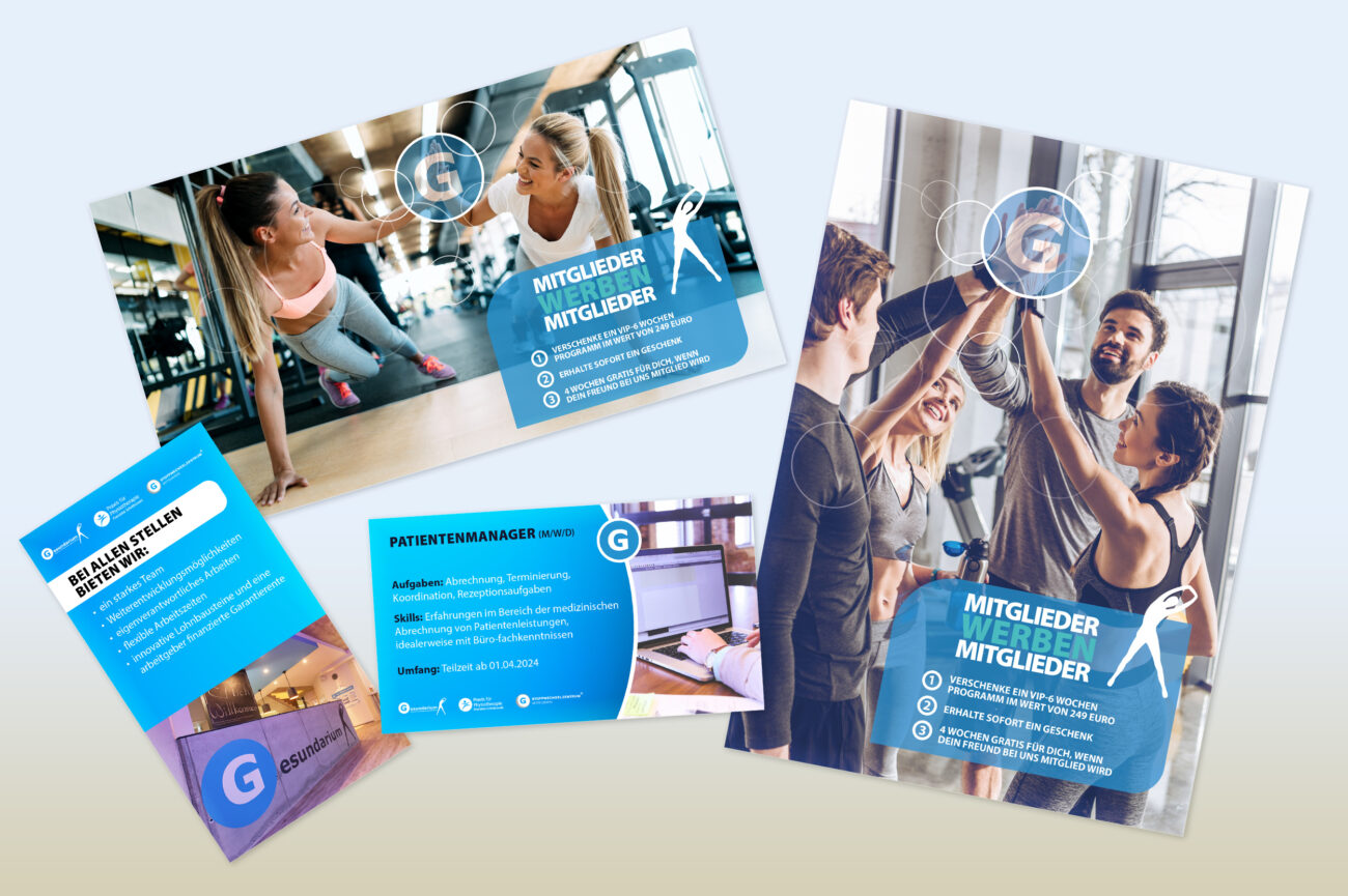 Entwicklung zielgruppengerechter Layouts für Flyer, Broschüren, Plakate und Geschäftsausstattung mit klarer visueller Hierarchie.