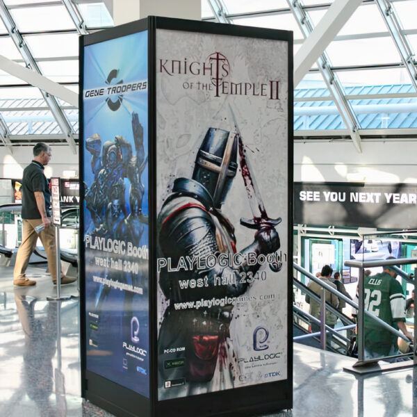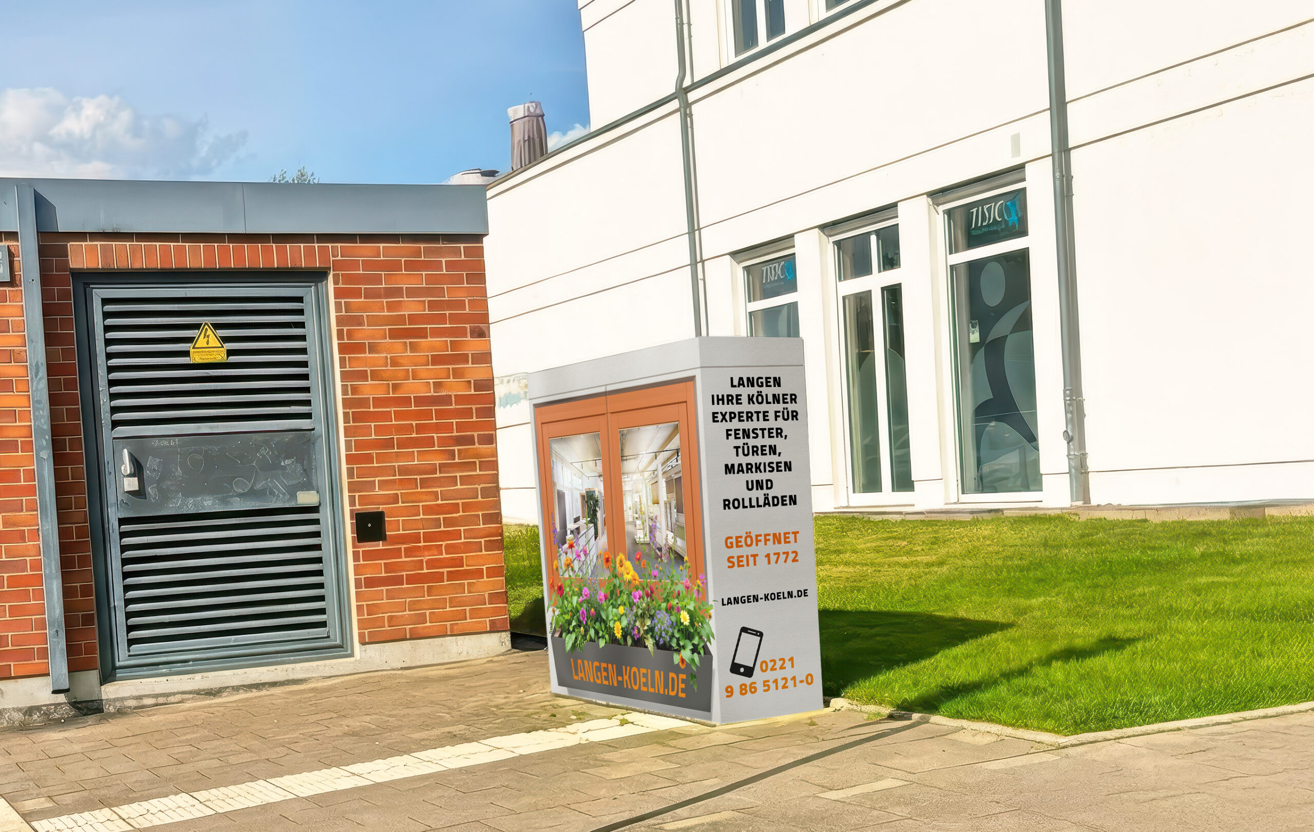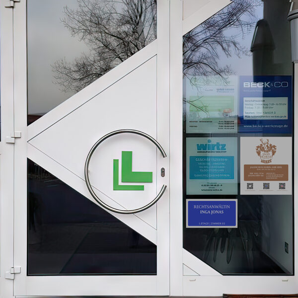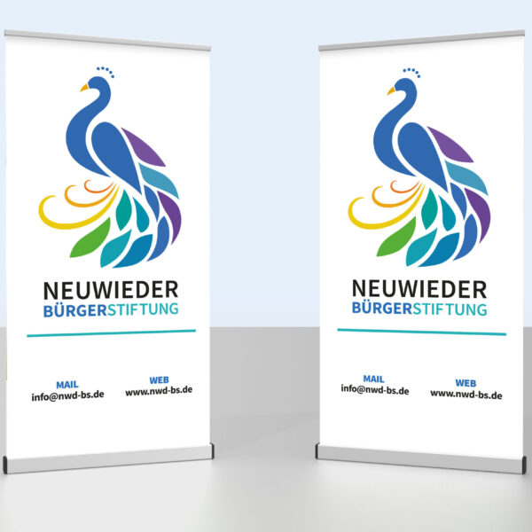 Gestaltung von Bannern, Plakaten, Fassadenwerbung und Messematerialien mit Fokus auf Fernwirkung und Lesbarkeit.